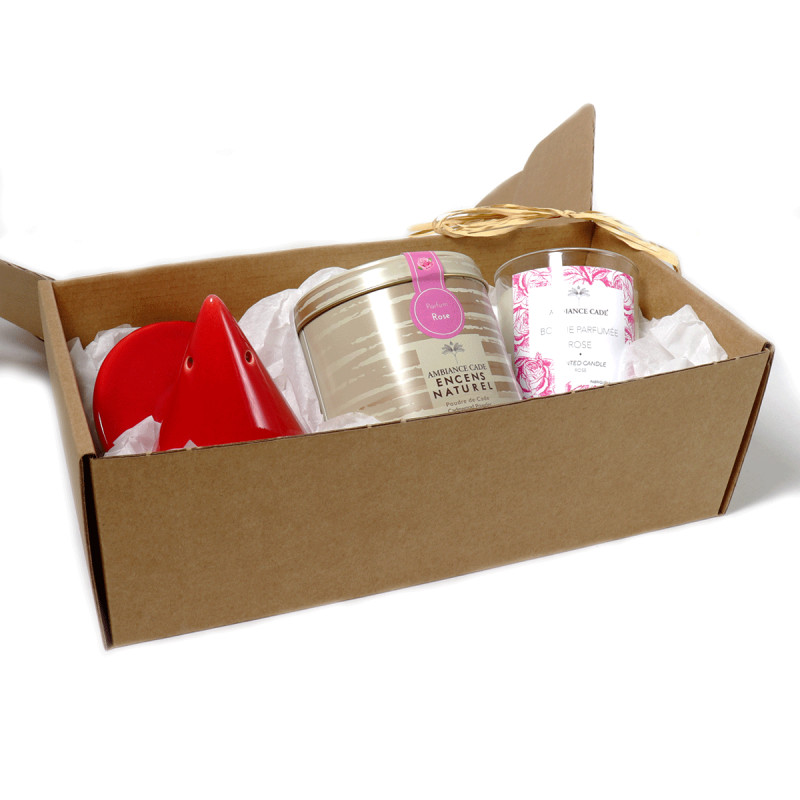 Tauchen Sie ein in die Welt des Wohlbefindens mit unserem exklusiven Set, bestehend aus der handgefertigten, tönernen Lampe Merlin in der zauberhaften Farbe "Rouge", einer großen Dose Cade-Pulver mit Rosen-Duft und einer hochwertigen Duftkerze, angereichert mit 100 % naturreinen, ätherischen Ölen edelster Rosen.